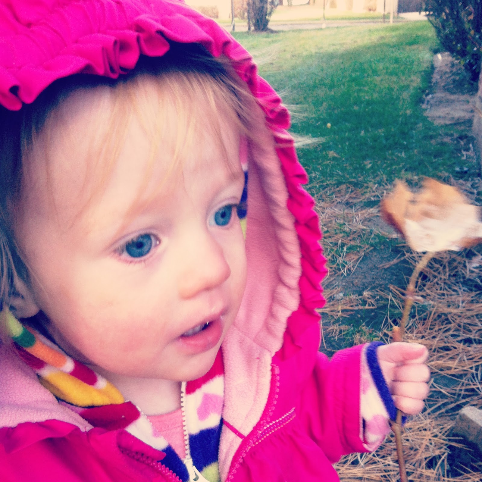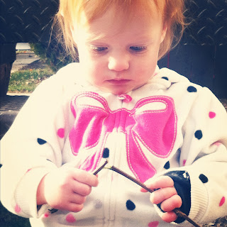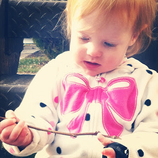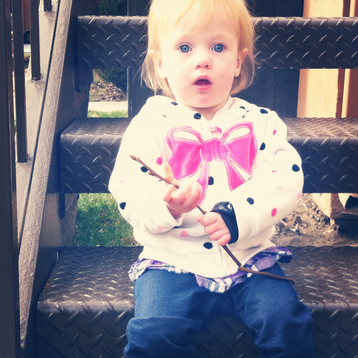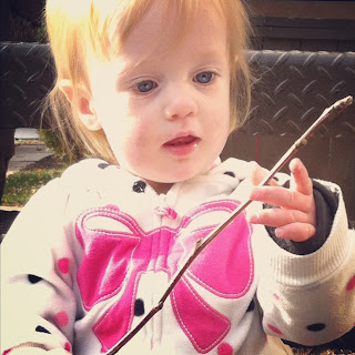 | Outside with a stick. |