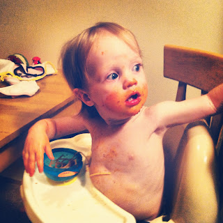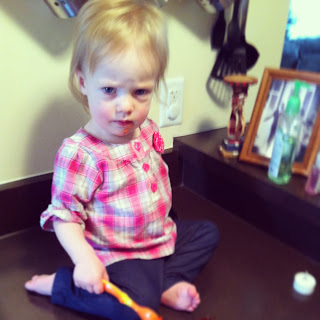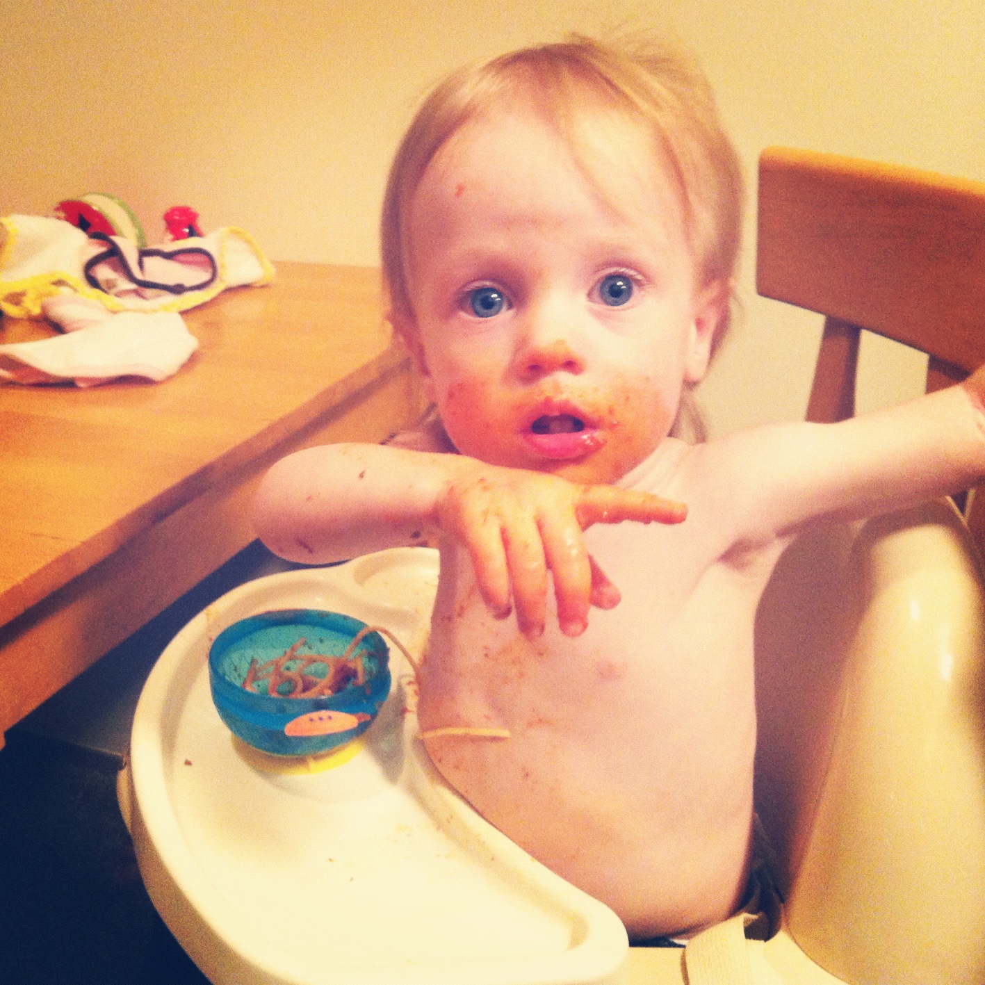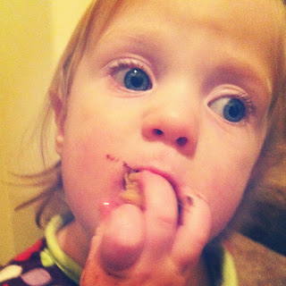 | Not wanting pictures while eating her Jell-o. |