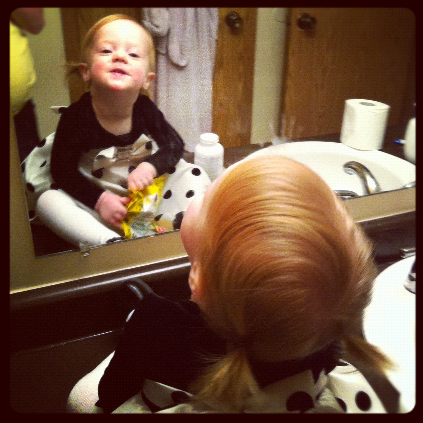 | Super funny to see mommy through the door crack… |