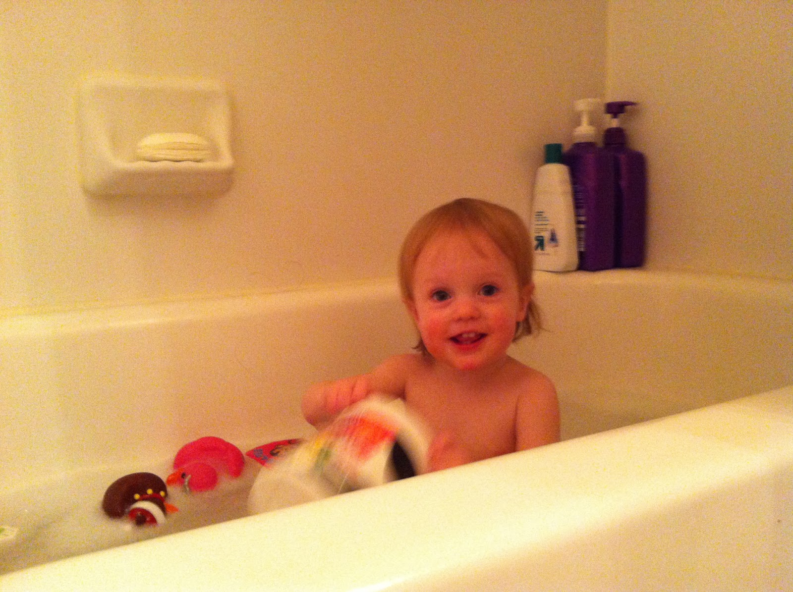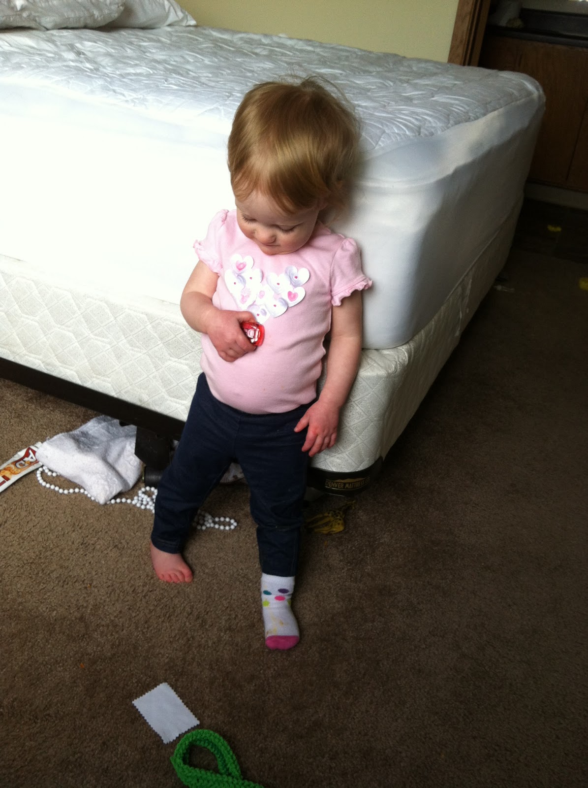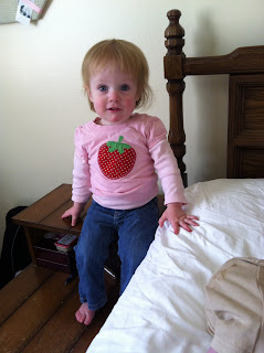 | Feeling like a big girl when Mommy let her sit in the big people chair. |
