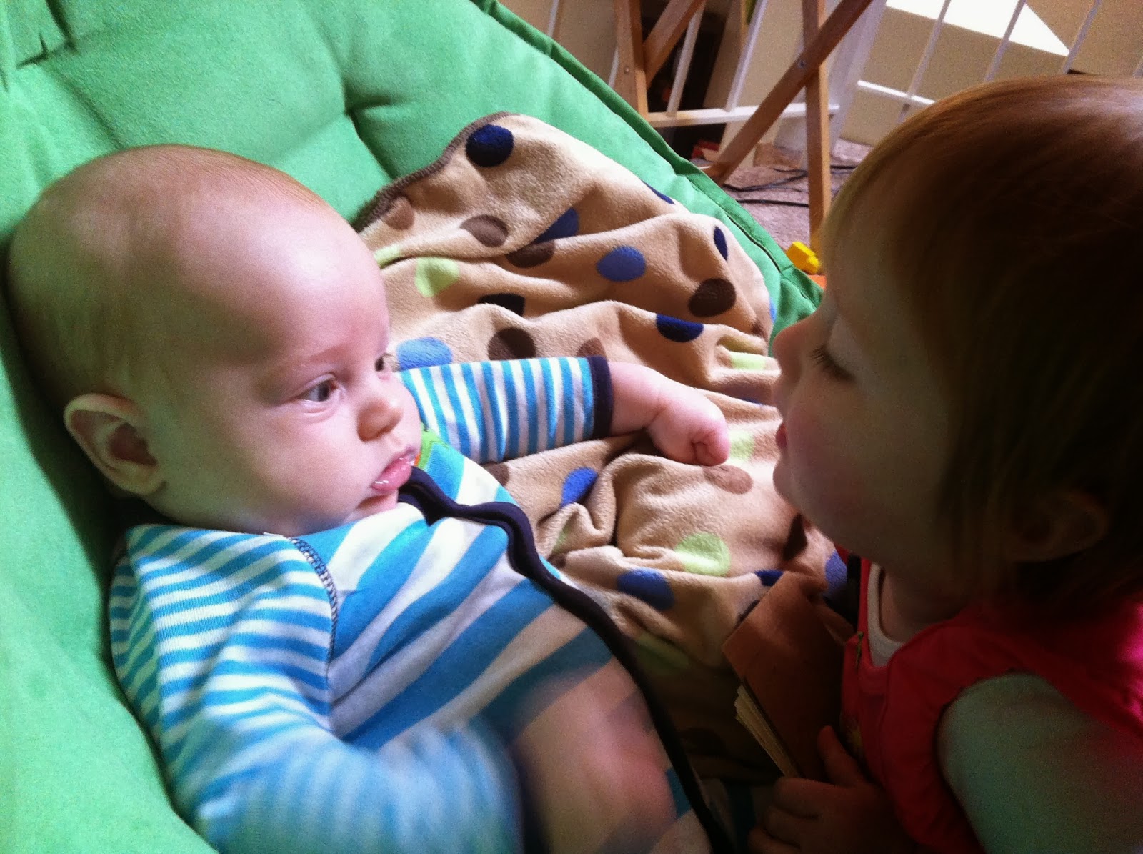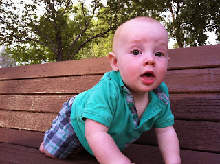 Kreed is now 10 months. Holy cow!! Does time get faster with each kid? He is a crawling and climbing machine and wants to walk with help but isn’t to keen on the walking solo concept. He babbles a lot and loves to stick out his tongue, furrow his brow, pucker his lips, and all other kinds of facial experimentations. He is tough and is already impressive holding his own when playing with Olivia.