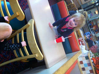 We got to play with cousin Chloe and Grandma a lot. Olivia and Chloe did amazing. They would bable to each other and share toys. Two 2 year-old girls don’t usually do that. We went to the shark reef and had a blast. Even Kreed loved to be against the glass trying to catch the fish. We played outside in Grandpa’s amazing backyard a lot (after the first three days of straight rain that is). Olivia did “Grandma’s School” and impressed me with her listening and following direction skills. She was quick to answer questions and loved listening to a book and learning about triangles. Olivia and Kreed liked riding the train and playing at the mall too.