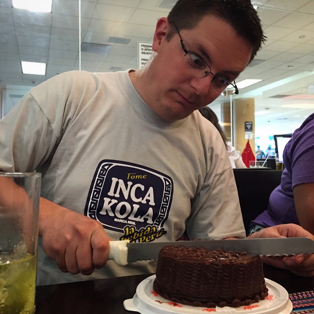 We celebrated Dr. Newbold’s birthday in the airport. The waiter just handed over this huge knife (behind security mind you) and walked away. #experiencePeru