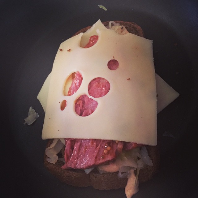 Marinaded and smoked, this corned beef brisket made for an awesome Reuben. #foodgram #traeger