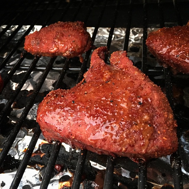 In case you were wondering how awesome our dinner was: those are petite steaks in a sweet and savory rub smoked with cherry wood pellets. #foodgram #nofilter