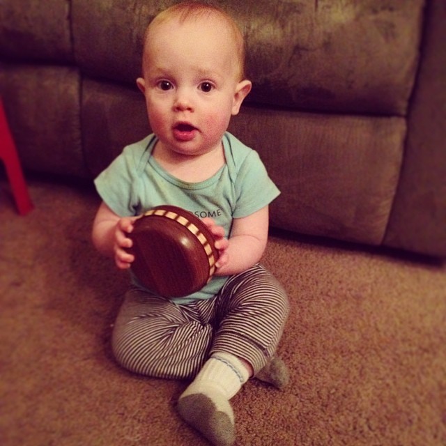 10 month old + wooden bowl with lid = hours of entertainment. [Instagram]