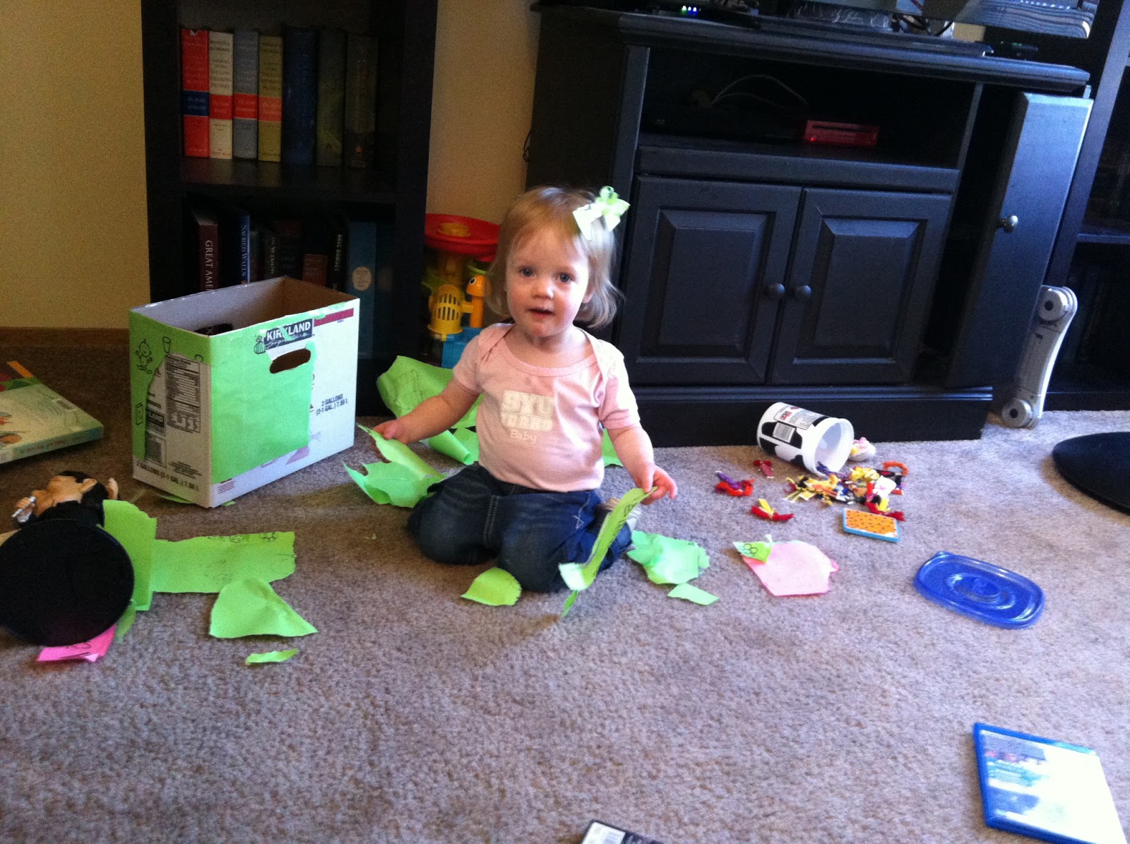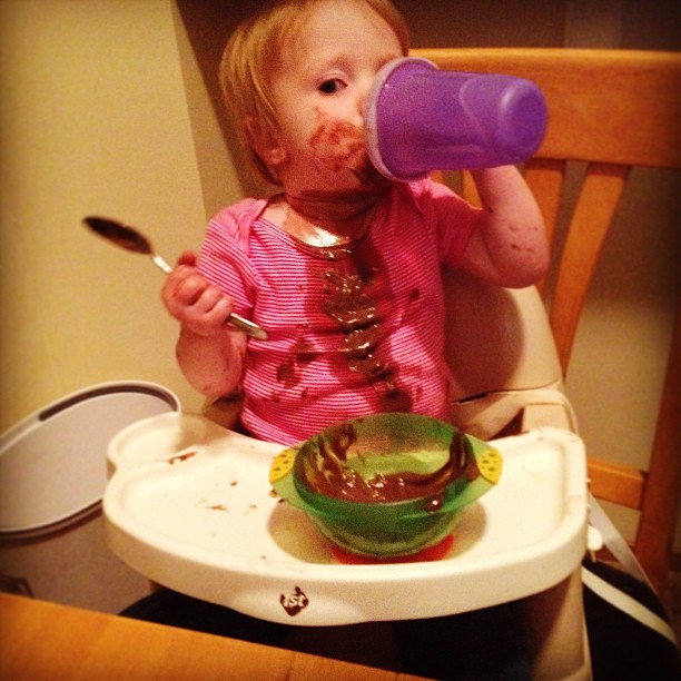 | And Monday morning, Olivia is ready to make a mess for Mommy 🙂 |